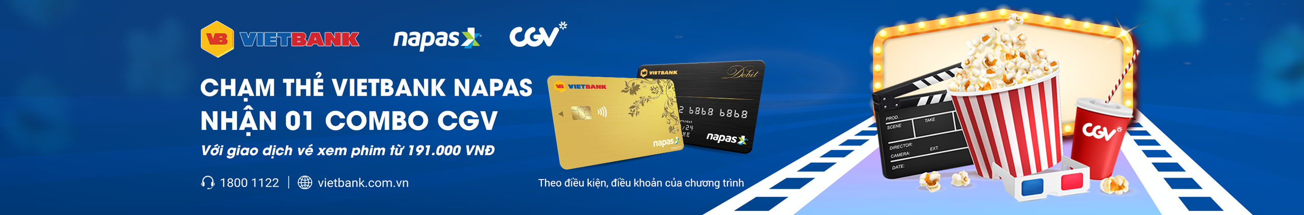 Dành cho khách hàng thanh toán trực tiếp bằng thẻ NAPAS trên POS tại Hệ thống rạp CGV trên toàn quốc.