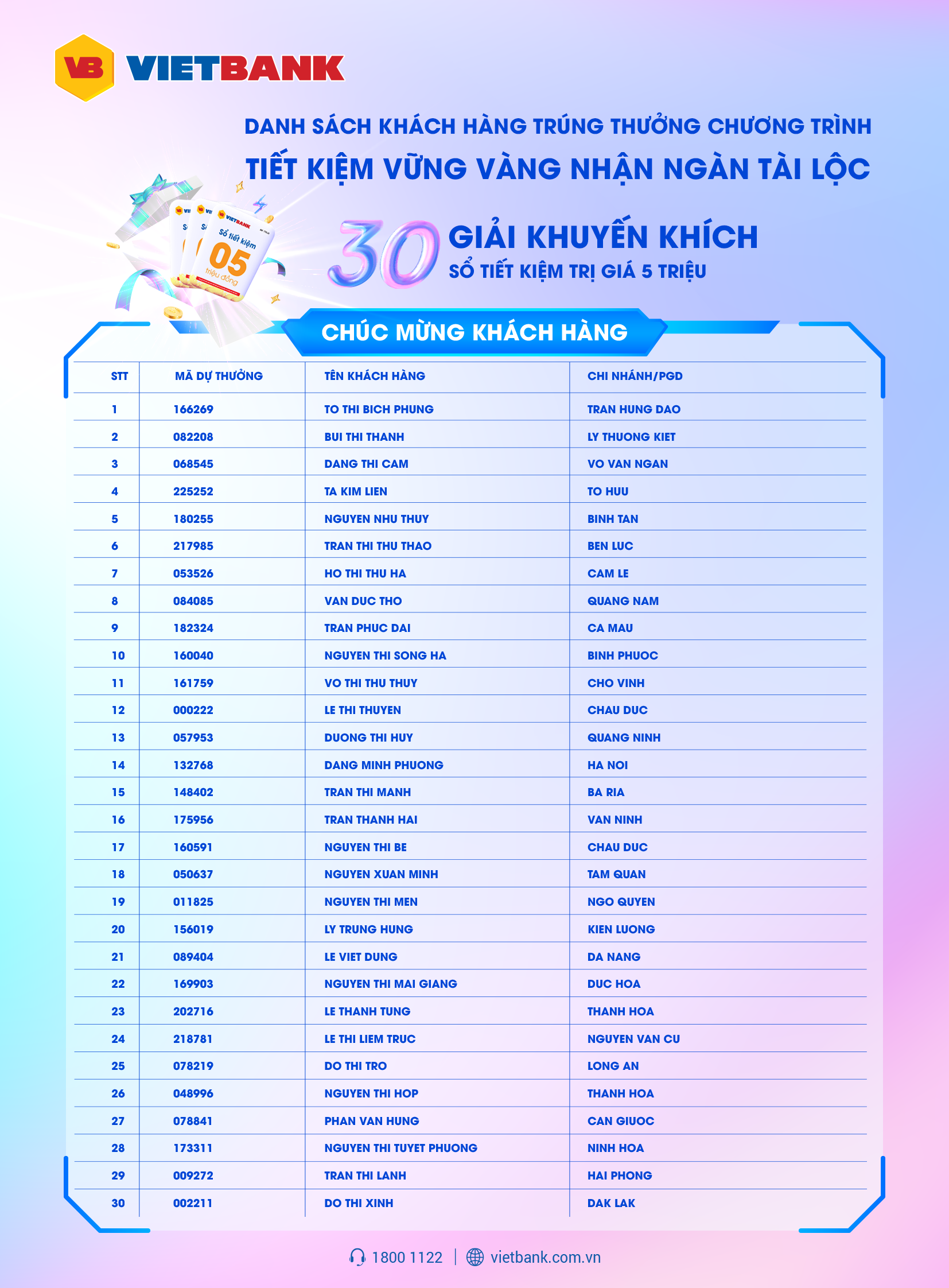 Xem thêm danh sách khách hàng trúng thưởng tại đây.
