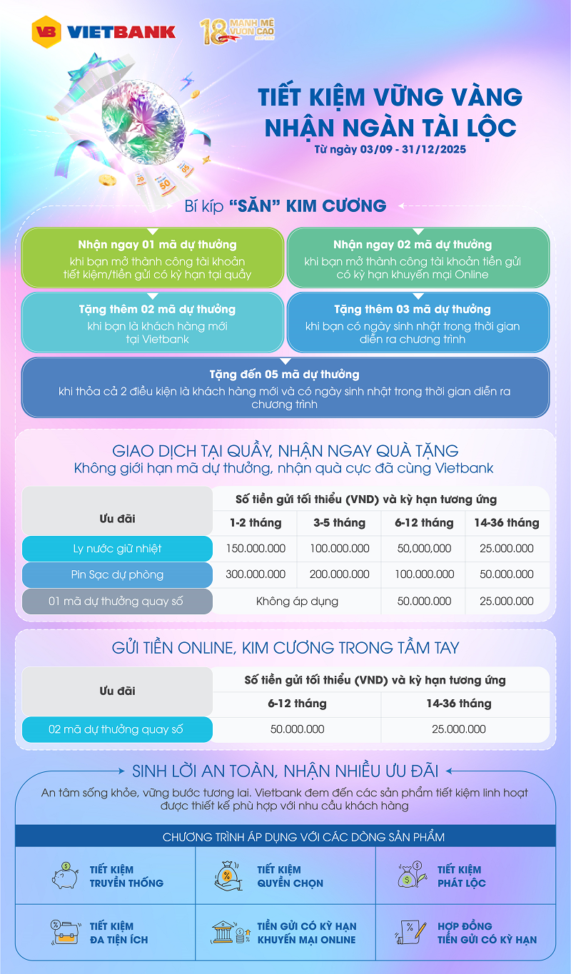 Để biết thêm thông tin chi tiết về chương trình, khách hàng có thể liên hệ các điểm giao dịch của Vietbank trên toàn quốc hoặc thông qua hotline 1800.1122
