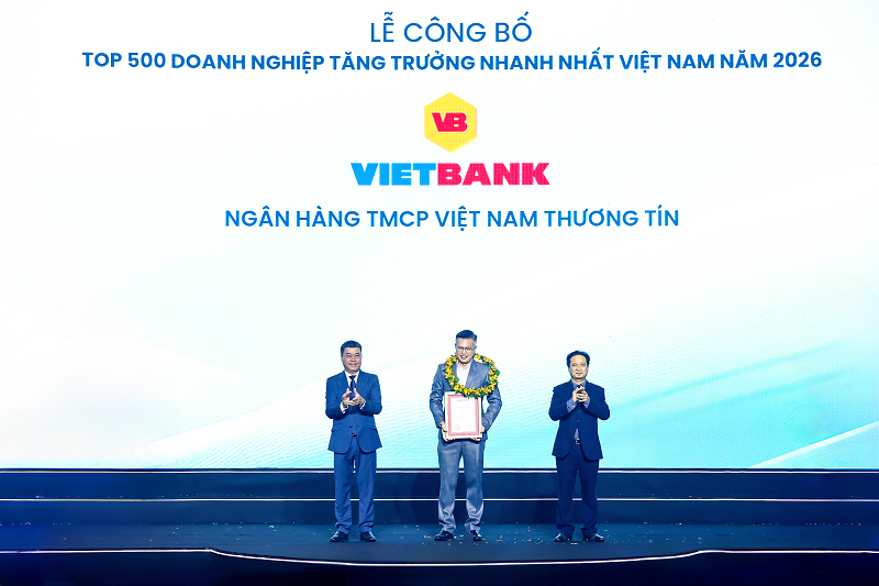 Vietbank được vinh danh trong bảng xếp hạng Top 50 doanh nghiệp tăng trưởng xuất sắc năm 2026
